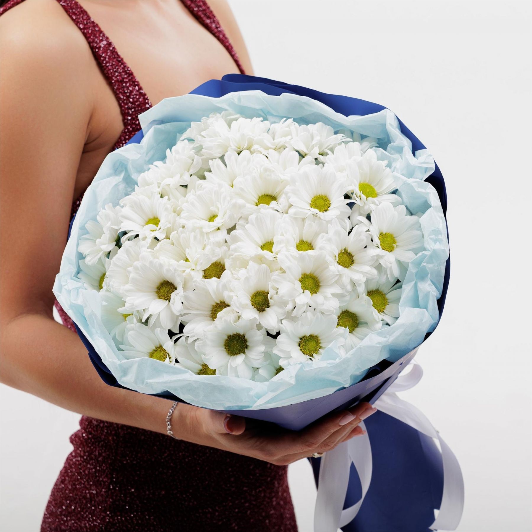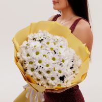 Монобукет из 7 белых кустовых хризантем в красивой упаковке - прекрасный выбор!