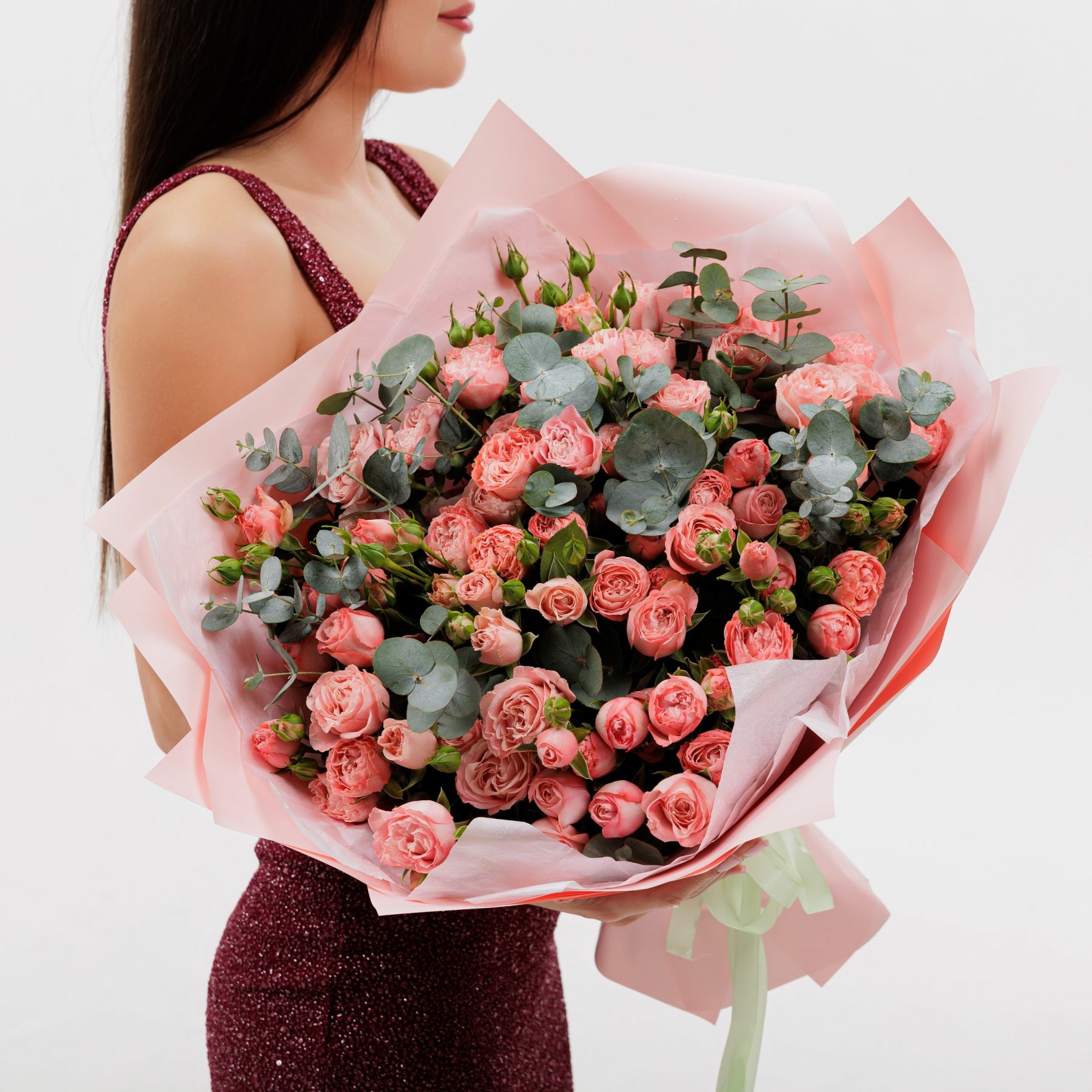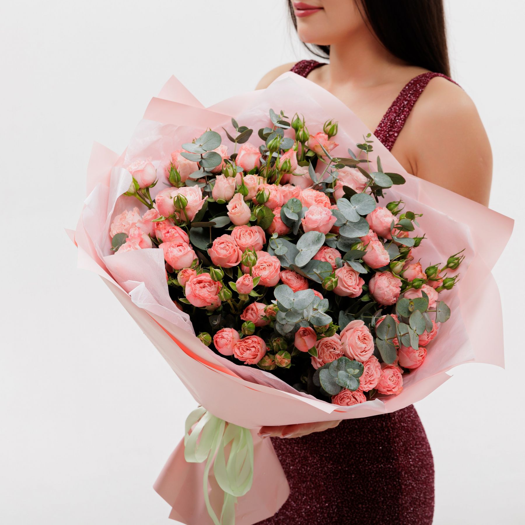 Этот букет из 15 кустовых роз с эвкалиптом - прекрасный выбор!