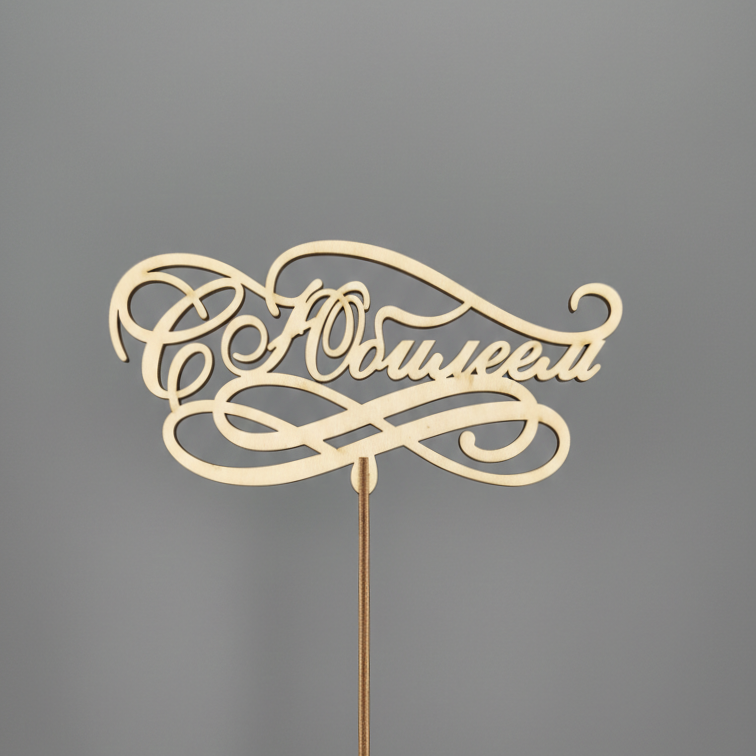 Деревянный топпер "С юбилеем" - станет идеальным дополнением к вашему букету